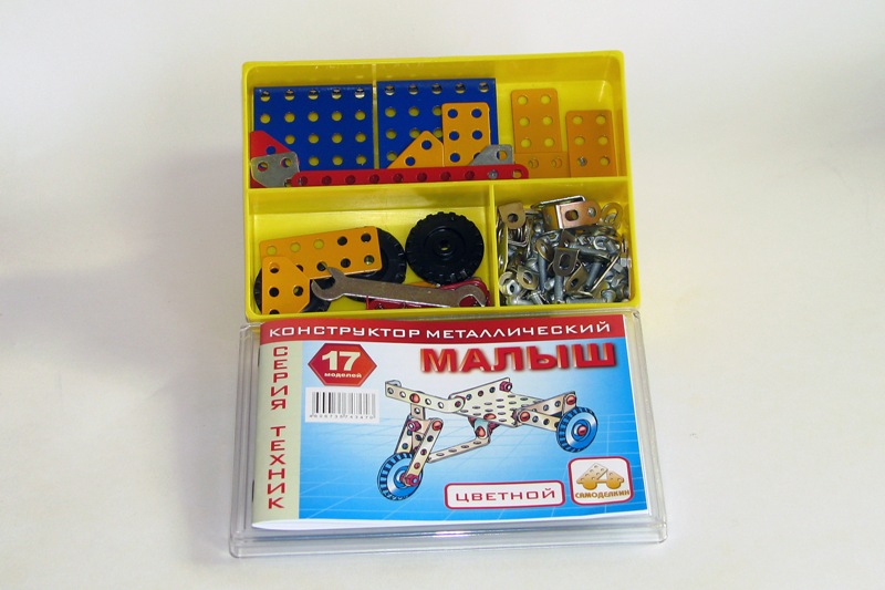 Из серии цветных металлических конструкторов. Детали конструктора окрашены в красный, синий и желтый цвета, что делает модели яркими и красочными.