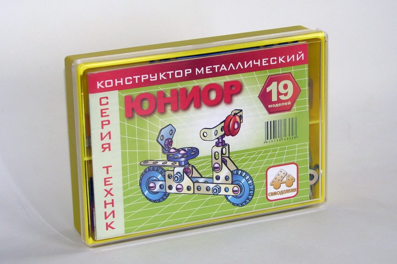 Упаковка конструктора - пластмассовая коробка с прозрачной крышкой.