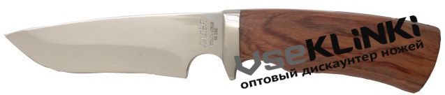 Общая длина 260 мм, длина клинка 140 мм, сталь 40х13, рукоять-орех, ножны-кордура.