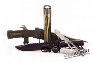 Общая длина 350 мм, длина клинка 200 мм, сталь 40х13, рукоять-металл, ножны-пластик.