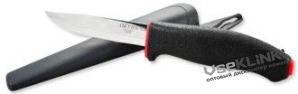 Общая длина 228 мм, длина клинка 100 мм, сталь 40x13, рукоять-резина, ножны-пластик