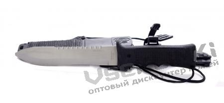 Общая длина 310 мм, длина клинка 175 мм, сталь 40Х13, рукоять-металл, ножны-пластик.