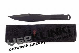 Общая длина 225 мм, длина клинка 140 мм, сталь 40Х13, рукоять- металл, черное покрытие, ножны – кордура