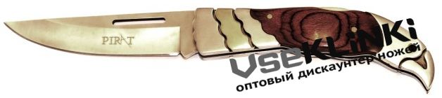 Общая длина 230 мм, длина клинка 95 мм, сталь 440, рукоять-дерево.