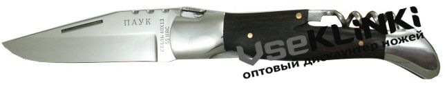 Общая длина 225 мм, длина клинка 100 мм, сталь 40Х13, рукоять-дерево, ножны-кордура.