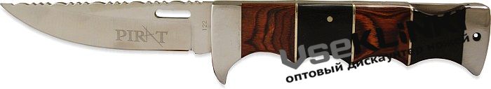 Общая длина 233 мм, длина клинка 105 мм, сталь 440, рукоять-дерево, ножны-кордура