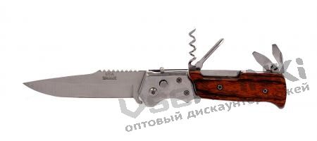 Общая длина 205 мм, длина клинка 90 мм, сталь 40Х13, рукоять-дерево, ножны-кордура.