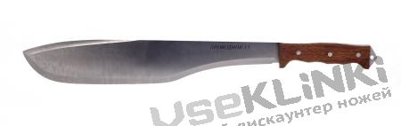 Общая длина 530 мм, длина клинка 380 мм, сталь 40Х13, рукоять-дерево, ножны-кордура.