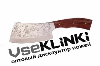 Общая длина 257 мм, длина до рукояти 130 мм, сталь 440, рукоять-дерево, ножны-кордура.