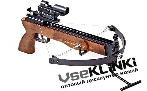Арбалет пистолетного типа. Габариты: 420х440х170 мм, дальность стрельбы 30 м, масса нетто 2,2 кг, сила натяжения 15 кг, точность 15 м. Внимание! Прицела нет в комплекте!