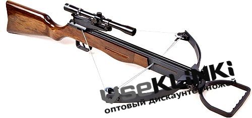 Арбалет винтовочного типа. Габариты: 830х560х190 мм, дальность стрельбы 80 м, масса нетто 3,7 кг, сила натяжения 35 кг, точность 40 м. Внимание! Прицела нет в комплекте!