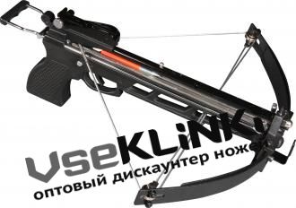 Арбалет пистолетного типа. Габариты: 370x400x130, дальность стрельбы 30 м, масса нетто 1,3 кг, сила натяжения 10 кг, точность 15 м