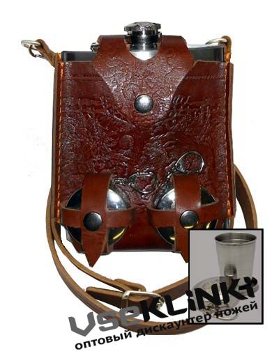 В кожаном чехле 0,54 л + с ремнем + 2 складных стакана в комплекте