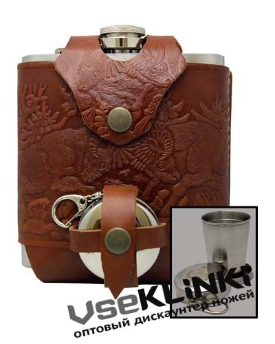 В кожаном чехле 0,48 л + 1 стакан в комплекте