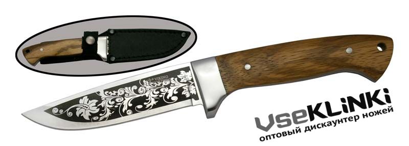 Общая длина 212 мм, длина клинка 100 мм, сталь 420, рукоять-дерево, ножны-нейлон.