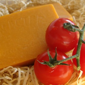 Соляное мыло с томатами и маслом бархатцев. Нежно и глубоко очищает кожу. Аромат бархатцев согревает, успокаивает. Томаты придают мылу яркий рыжий цвет летнего вечернего солнца.